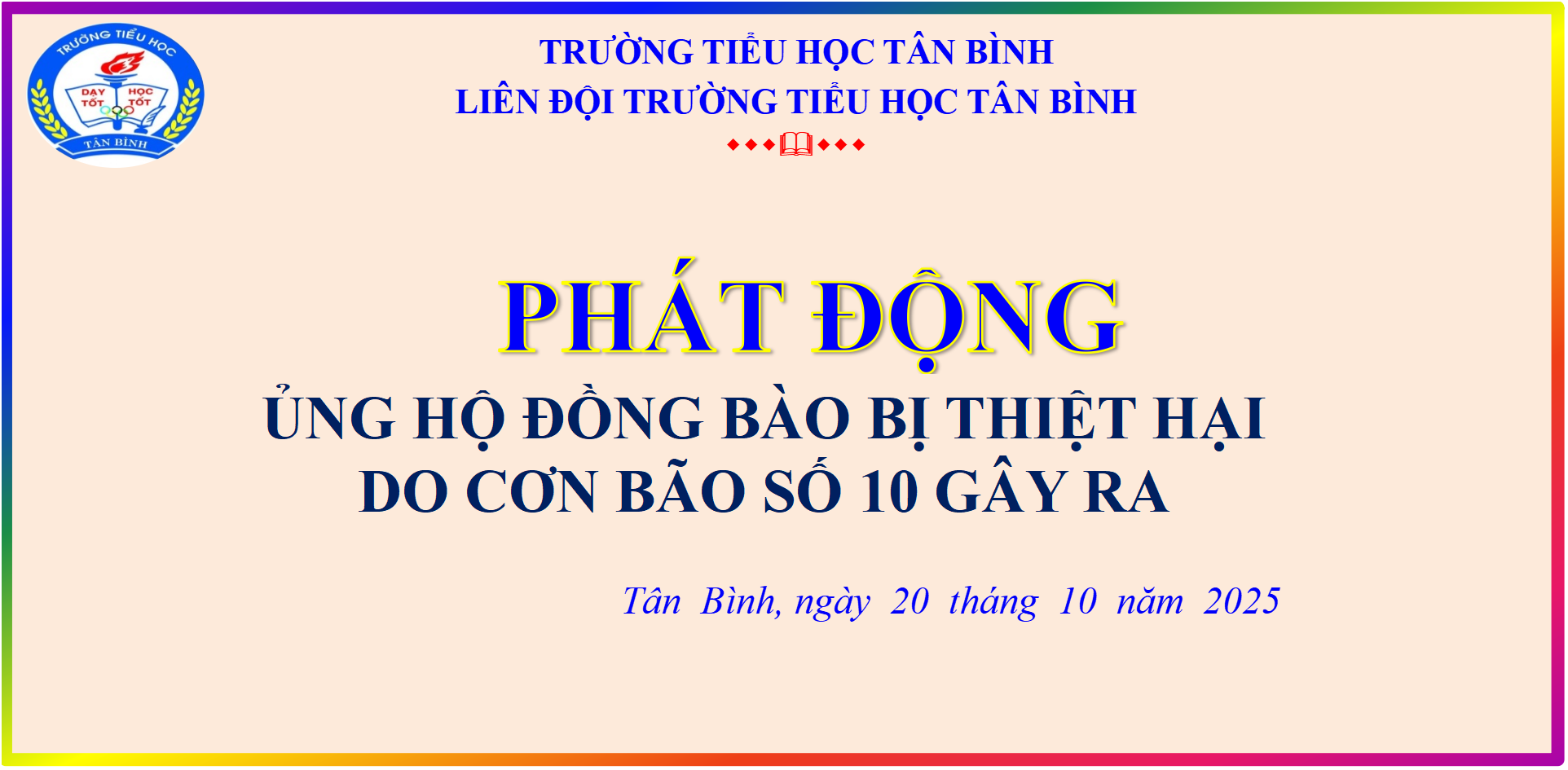 HỌC SINH TRƯỜNG TIỂU HỌC TÂN BÌNH QUYÊN GÓP ỦNG HỘ ĐỒNG BÀO BỊ THIỆT HẠI DO BÃO SỐ 10